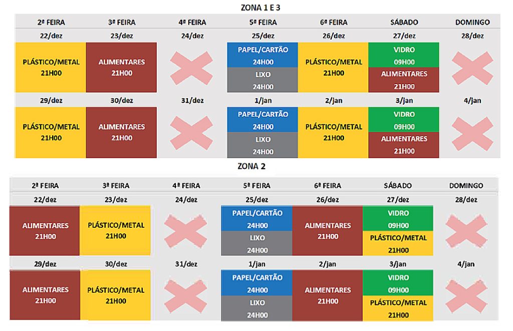 À semelhança do sucedido nos anos anteriores, durante a época natalícia, não haverá recolha de resíduos urbanos na noite de 24 para 25 de dezembro e de 31 de dezembro para 1 de janeiro de 2026.