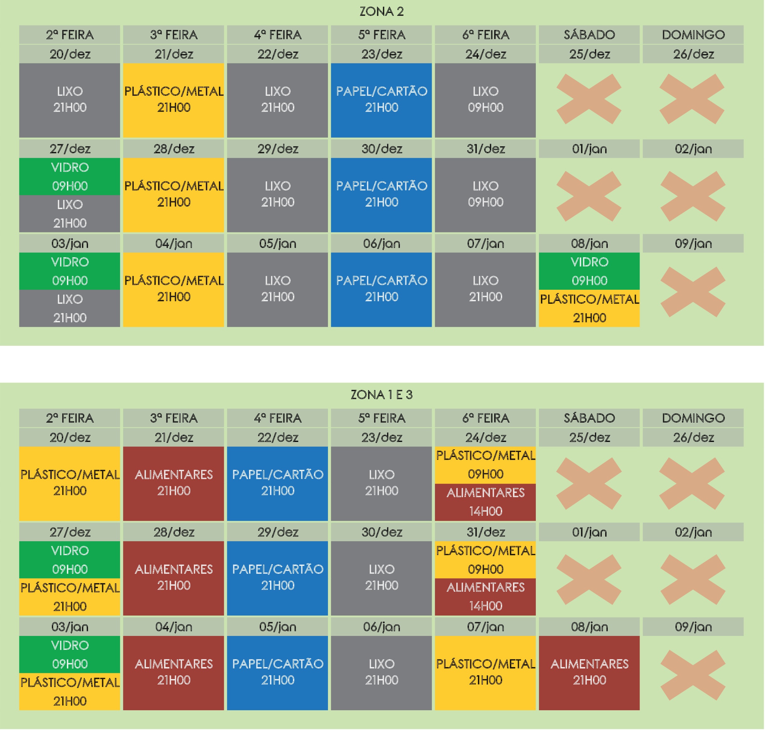 Nos dias em que o serviço da recolha de resíduos é excecionalmente suprimido, solicita-se um maior cuidado por parte dos munícipes em prol do respeito pelo meio ambiente e da limpeza da via pública em todo o concelho.