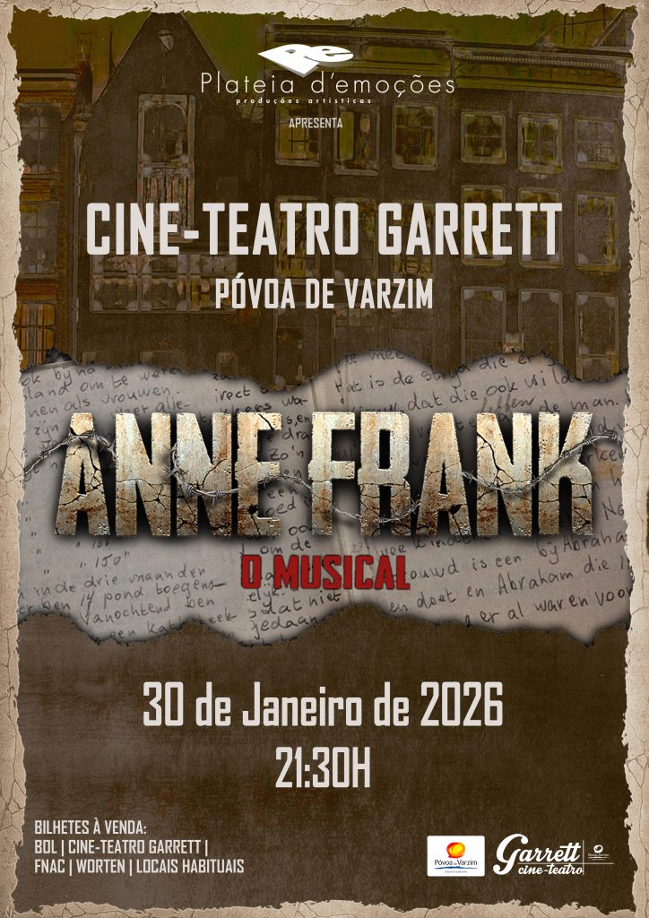 No dia 30 de janeiro, às 21h30, o Cine-Teatro Garrett do espetáculo "Anne Frank - O Musical".