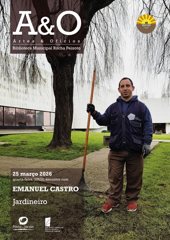 A Biblioteca Municipal Rocha Peixoto irá dinamizar, no dia 25 de março, às 10h00, uma sessão de “Artes & Ofícios” com Emanuel Castro, colaborador do Mapadi, a exercer funções de jardineiro neste espaço.