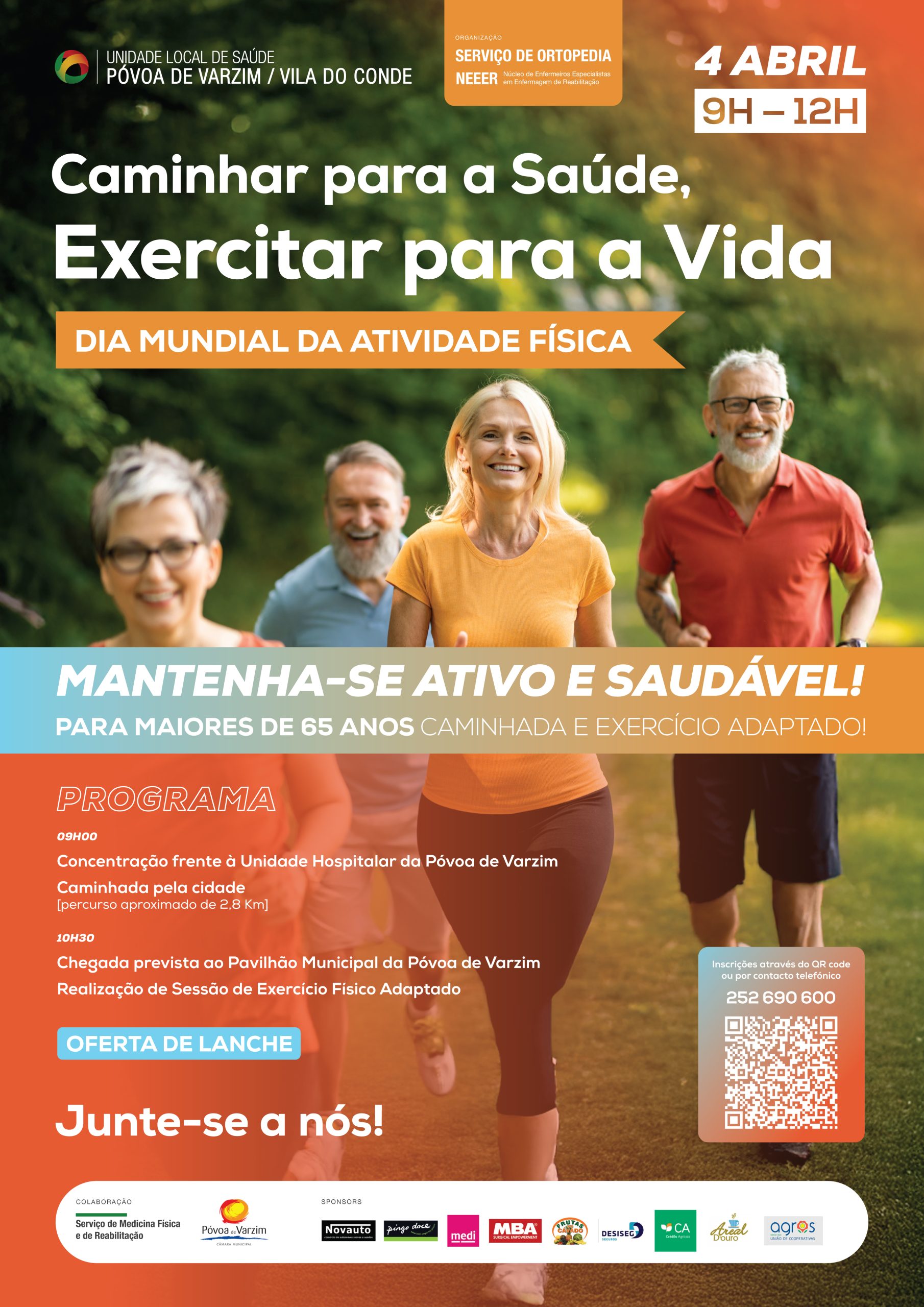 A Unidade Local de Saúde Póvoa de Varzim/Vila do Conde, através do Serviço de Ortopedia e do Núcleo de Enfermeiros Especialistas em Enfermagem de Reabilitação, vai assinalar o Dia Mundial da Atividade Física, celebrado a 6 de abril, com uma caminhada.