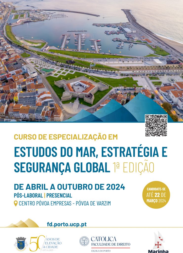 Encontra-se oficialmente aberto o período de inscrições para frequentar o Curso de Especialização em Estudos do Mar, Estratégia e Segurança Global, uma iniciativa pioneira conjunta do Município da Póvoa de Varzim, Escola do Porto da Faculdade de Direito da Universidade Católica Portuguesa e Marinha Portuguesa.