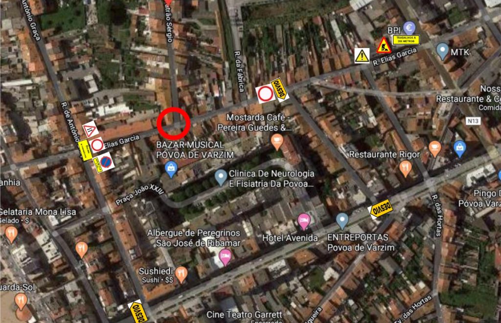 No dia 22 de maio, sexta-feira, no período da manhã, o trânsito estará cortado no entroncamento da Rua Elias Garcia com a Rua Patrão Sérgio.