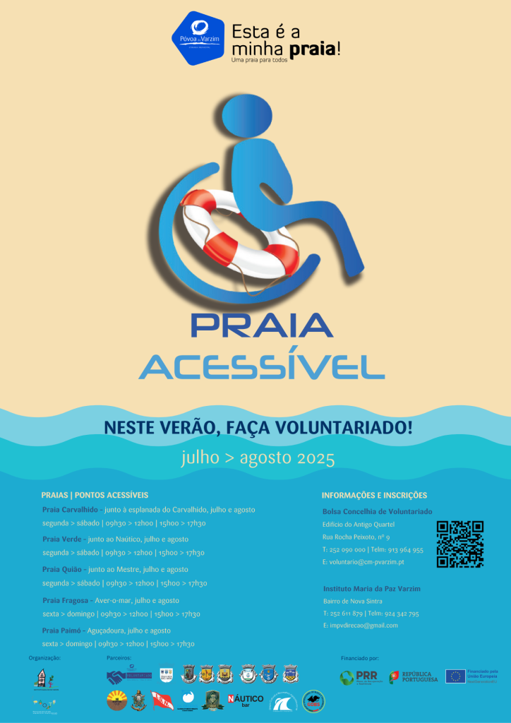 Encontram-se abertas as inscrições para voluntários nos diversos pontos acessíveis de praia, no âmbito do Projeto IN Póvoa – Praia Acessível, promovido pelo Município da Póvoa de Varzim em parceria com o Instituto Maria da Paz Varzim, contando com um conjunto alargado de parceiros.