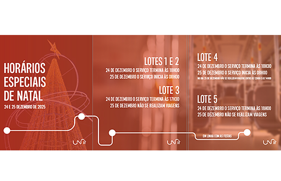 Assim, nos dias 24 e 25 de dezembro, os serviços de transporte da UNIR (Lote 3) terão horários especiais: