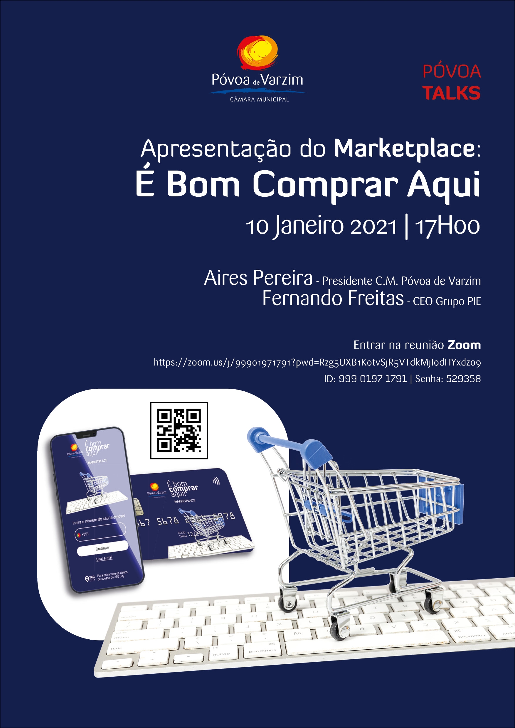 Para saber mais sobre esta nova plataforma, participe no lançamento e apresentação oficial do Marketplace “É Bom Comprar Aqui”, no próximo dia 10 de janeiro, pelas 17:00h. O evento online contará com as intervenções de Aires Pereira, Presidente da Câmara Municipal da Póvoa de Varzim, e do CEO do Grupo PIE, Fernando Freitas.