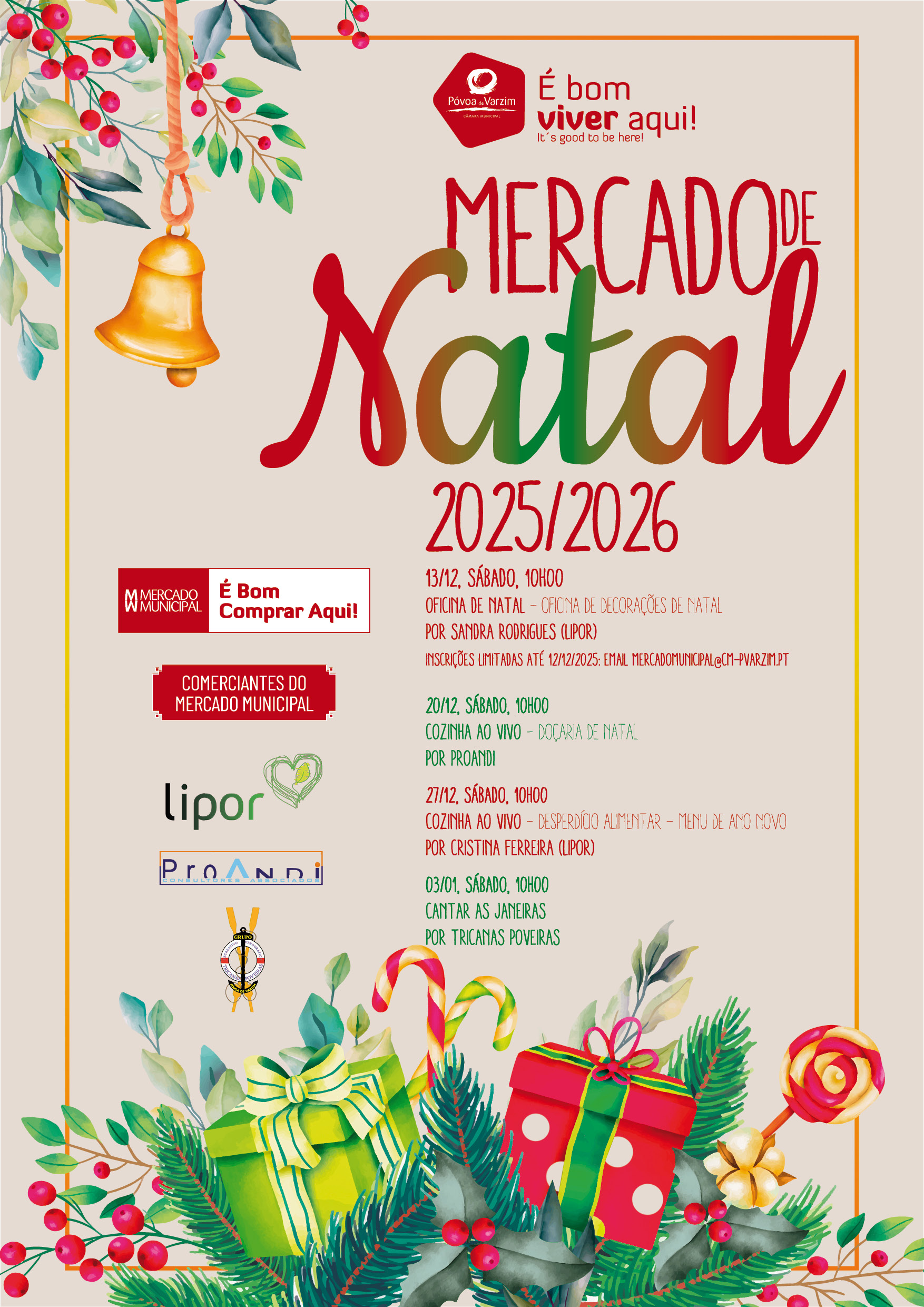 O evento tem início dia 13, com a realização de uma Oficina Criativa de Decorações de Natal, organizada em parceria com a Lipor. As inscrições, limitadas, devem ser feitas até ao dia 12 de dezembro, através do email mercadomunicipal@cm-pvarzim.pt.