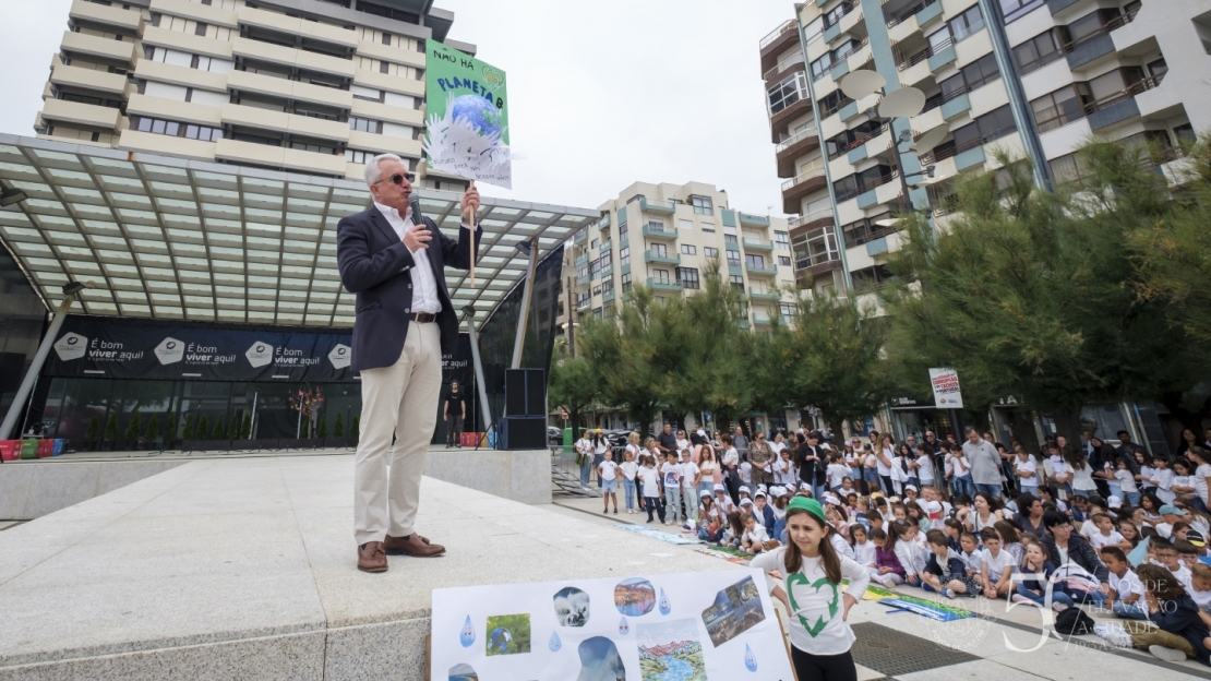 Esta atividade, selecionada como evento satélite do Pacto Ecológico Europeu, reuniu centenas de alunos das escolas básicas da cidade da Póvoa de Varzim – Desterro, Século, Nova, Giesteira, Sininhos e Grande Colégio – no Largo do Passeio Alegre.