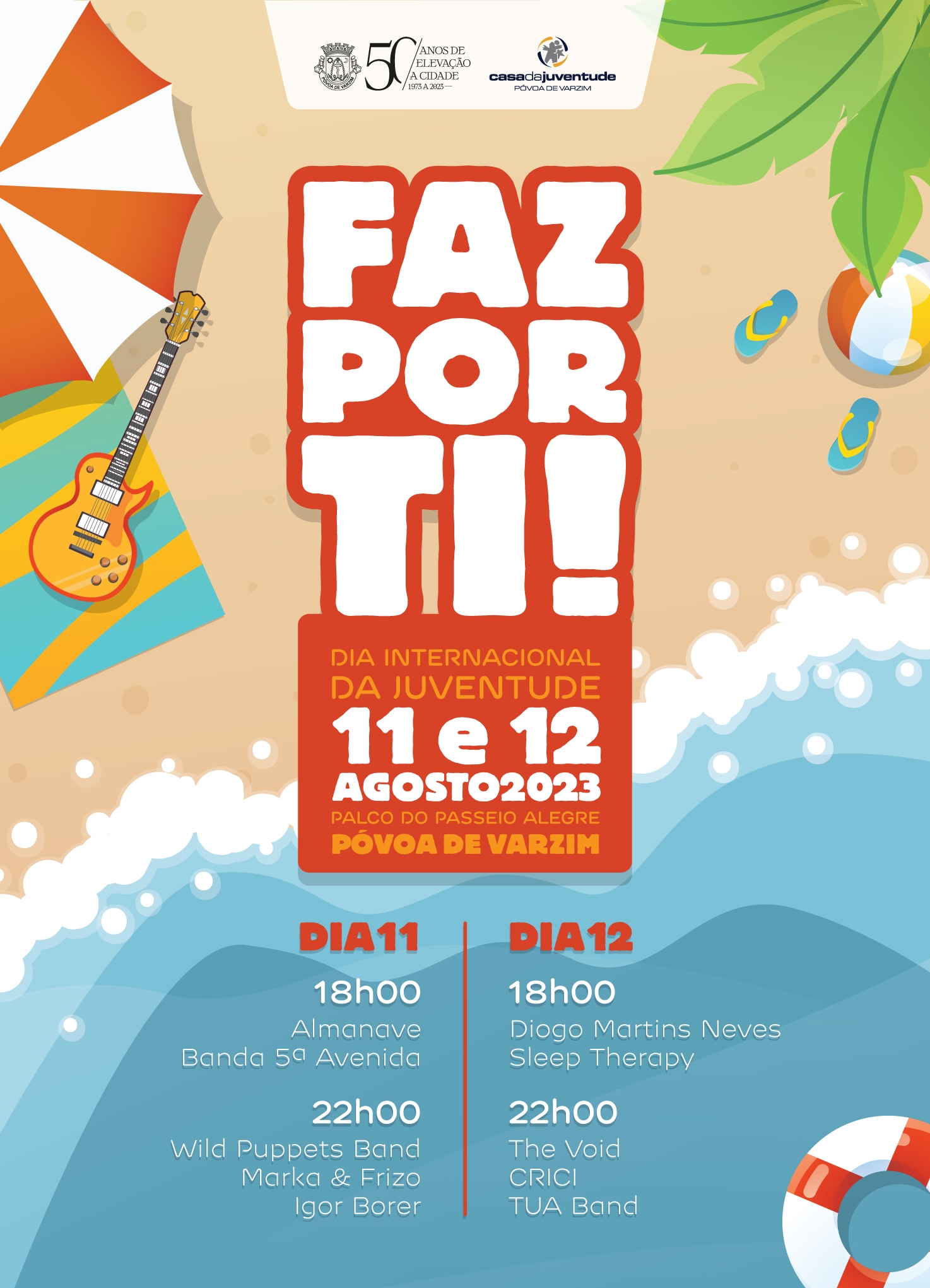 O “Faz por Ti” inicia às 18h00 de 11 de agosto, com as atuações dos Almanave e da Banda 5.ª Avenida. À noite, com começo agendado para as 22h00, os Wild Puppets Band, Marka & Frizo e Igor Borer prometem encher a noite poveira de música e animação.