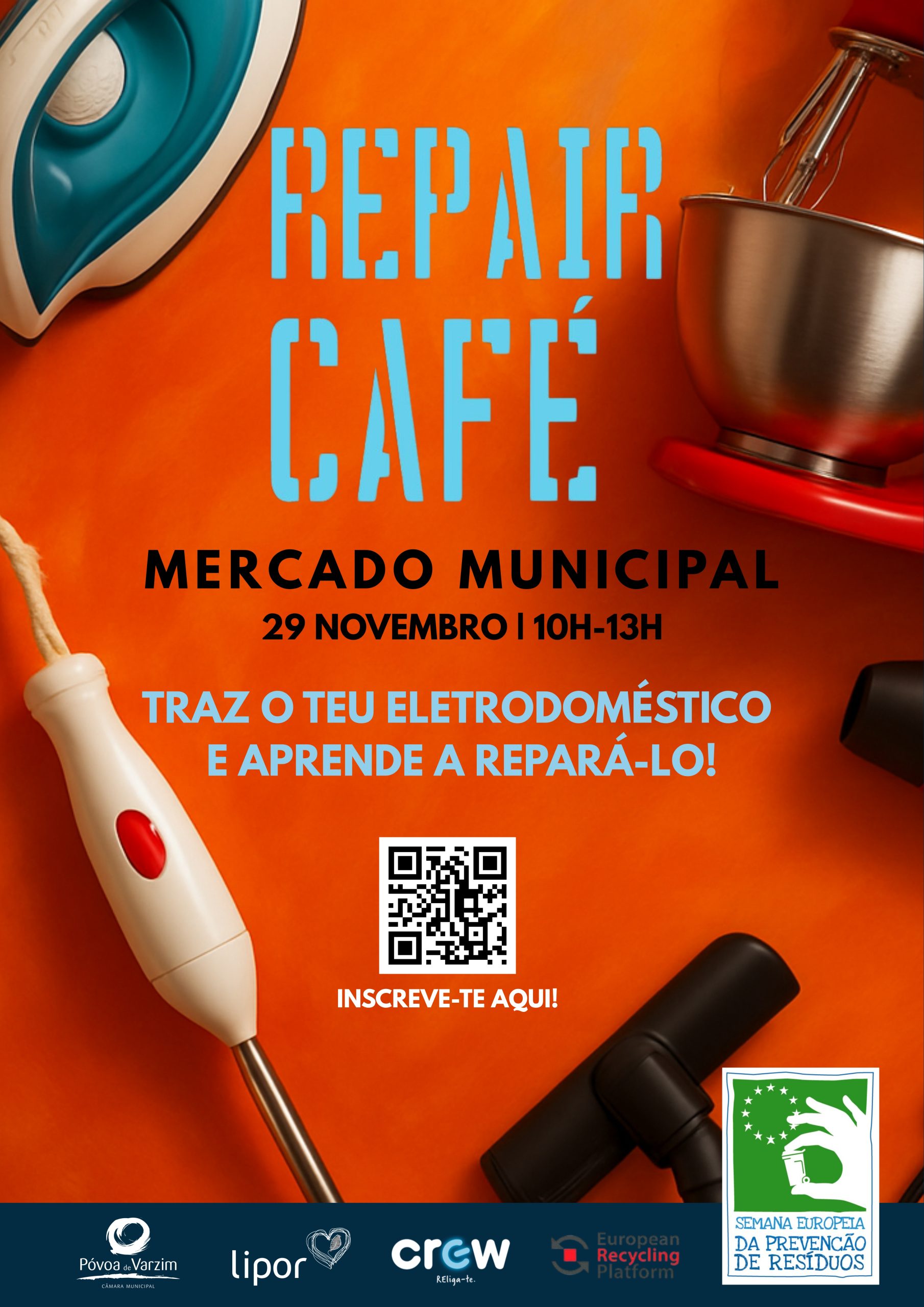 Neste sentido, serão realizadas duas ações no Mercado Municipal a 29 de novembro. Entre as 10h00 e as 13h00, terá lugar o Repair Café, uma atividade gratuita que convida as pessoas a levar um pequeno eletrodoméstico para aprender a repará-lo, pensada para envolver a comunidade na reutilização e recuperação de objetos do quotidiano. Os interessados podem inscrever-se para participar através do seguinte link: https://apps.lipor.pt/ords/r/crew/rcpreinscricao/pre-registo?ev=681