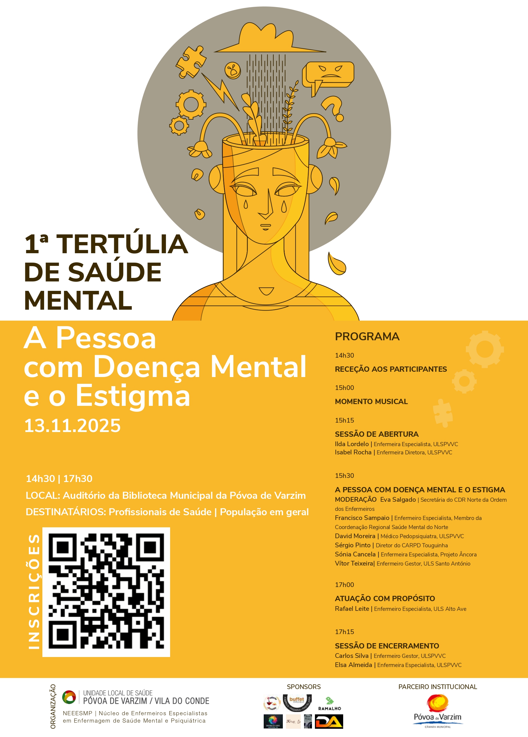 A Tertúlia destina-se a todos os interessados e tem inscrição obrigatória através do QR Code presente no cartaz.