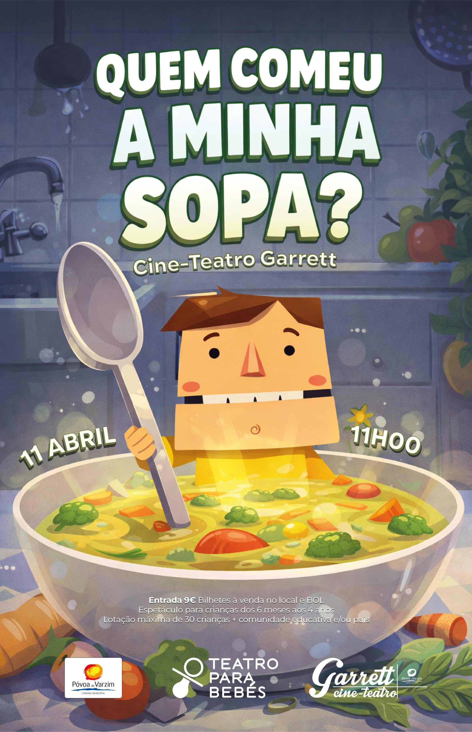 Será apresentado um divertido espetáculo para crianças dos 6 meses aos 4 anos sobre A Alimentação e a Sopa… de ficar de barriga cheia.