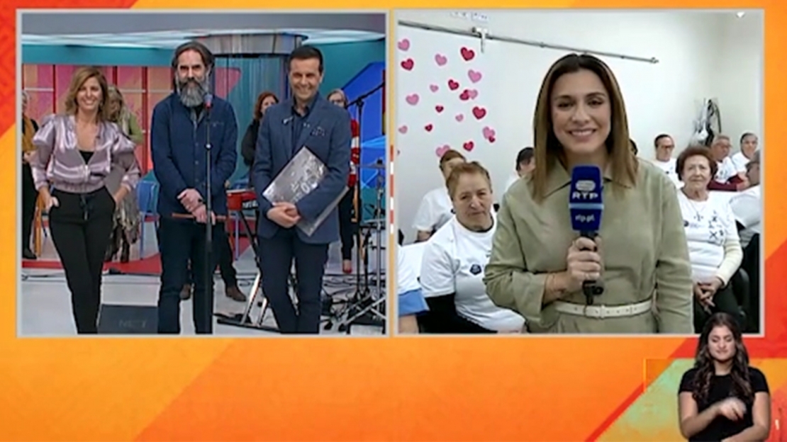 Em direto para o programa Praça da Alegria, a repórter Rita Belinha testemunhou em primeira mão a alegria dos utentes, que não se envergonharam com a presença das câmaras e mostraram boa forma física na aula de educação física (COA) e vozes afinadas na aula de música (COL).