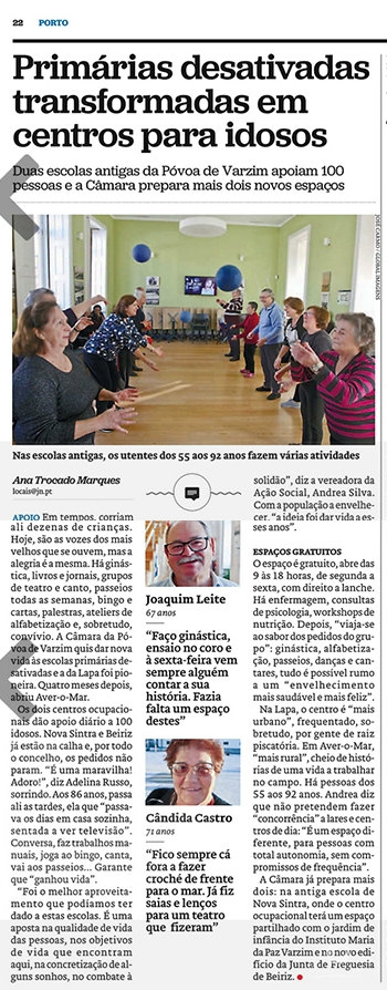 A edição de domingo do Jornal da Tarde sublinhou o sucesso da transformação de duas antigas escolas primárias em centros ocupacionais, destinados a apoiar, diariamente, 100 idosos.