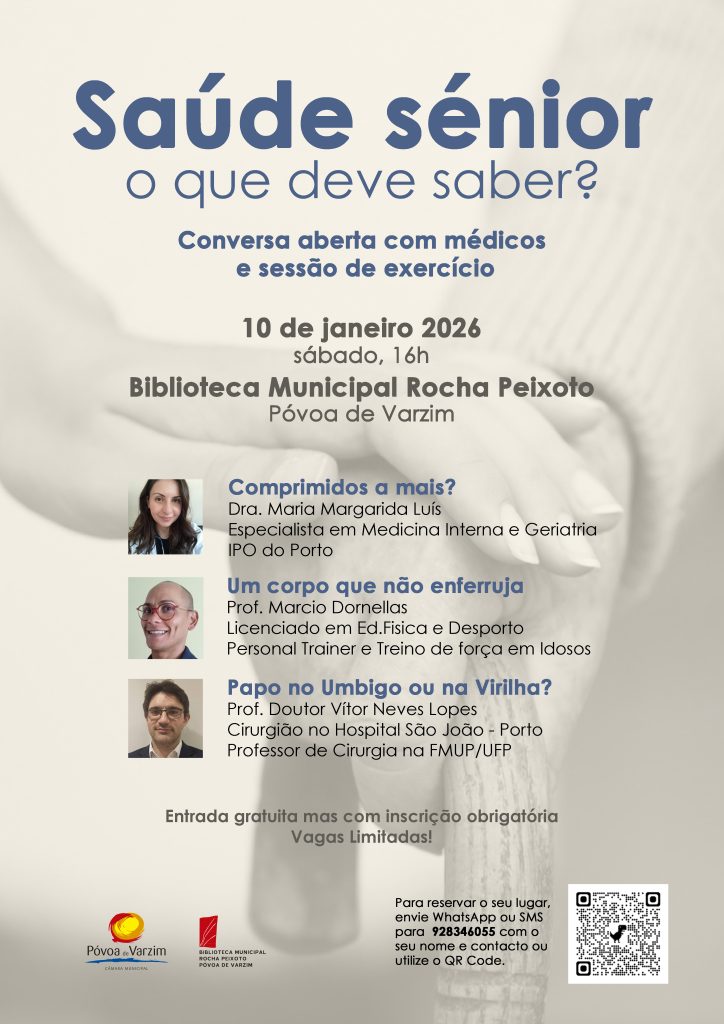 A Biblioteca Municipal Rocha Peixoto vai acolher, este sábado, 10 de janeiro, às 16h00, uma conversa com médicos e sessão de exercício com o mote “Saúde sénior: o que deve saber”.