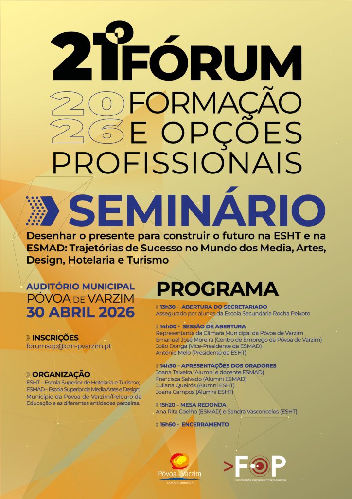 No âmbito do evento, irá realizar-se o Seminário “Desenhar o presente para construir o futuro na ESHT e na ESMAD: Trajetórias de Sucesso no Mundo dos Media, Artes, Design, Hotelaria e Turismo”, no Auditório Municipal, a 30 de abril.