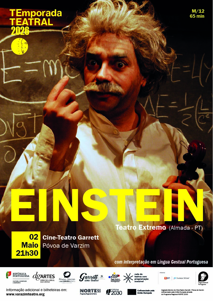 No âmbito da Temporada Teatral, a Varazim Teatro apresenta, a 2 de maio, pelas 21h30 a peça “Einstein”, pelo Teatro Extremo, no Cine-Teatro Garrett.