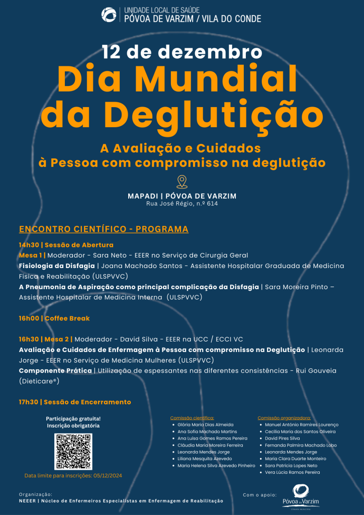 Organizado pelo Núcleo de Enfermeiros Especialistas em Enfermagem de Reabilitação da nossa Unidade Local de Saúde, com o apoio da Câmara Municipal da Póvoa de Varzim, terá lugar um encontro científico sobre esta temática, no dia 12 de dezembro, dirigido a profissionais de saúde.