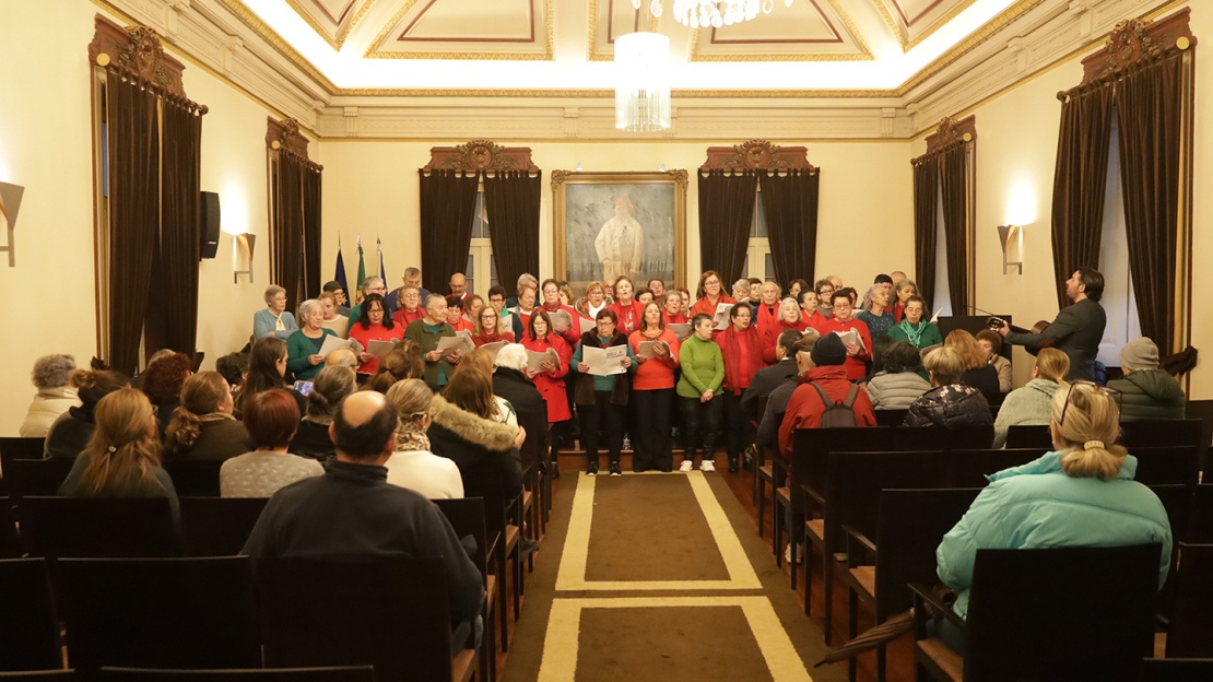O Salão Nobre da Câmara Municipal da Póvoa de Varzim recebeu, na passada segunda-feira, os utentes dos Centros Ocupacionais do concelho que, sob direção do maestro Tiago Pereira, cantaram as boas festas aos funcionários municipais e aos Vereadores Octávio Correia e Carina Moreira.