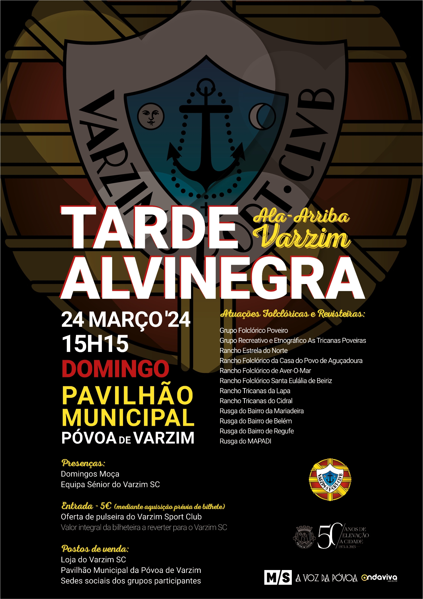 A partir das 15h15, o Pavilhão Municipal irá receber a equipa sénior do Varzim e o artista poveiro Domingos Moça, que irá animar a plateia, em conjunto com as atuações folclóricas e revisteiras do Grupo Folclórico Poveiro, Grupo Recreativo e Etnográfico As Tricanas Poveiras, Rancho Estrela do Norte, Rancho Folclórico da Casa do Povo de Aguçadoura, Rancho Folclórico de Aver-o-Mar, Rancho Folclórico Santa Eulália de Beiriz, Rancho Tricanas da Lapa, Rancho Tricanas do Cidral, Rusga do Bairro da Mariadeira, Rusga do Bairro de Belém, Rusga do Bairro de Regufe e Rusga do MAPADI.