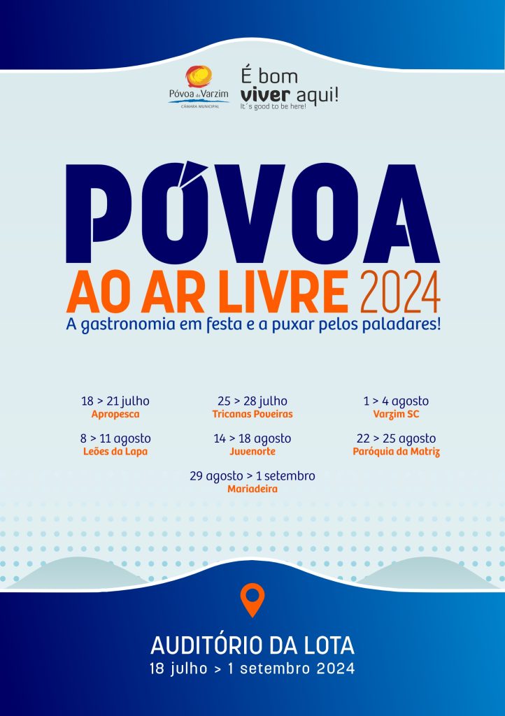 Este ano, são sete as associações locais vão levar à mesa iguarias da nossa terra e do nosso mar, para que as famílias poveiras, os nossos visitantes e turistas possam desfrutar de um verão ao ar livre cheio de festa, convívio e diversão.