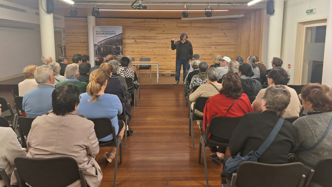 Depois de uma visita guiada à exposição por José Carlos Marques, os utentes participaram numa conversa com o fotógrafo Rui Sousa sobre a história e a arte da fotografia.