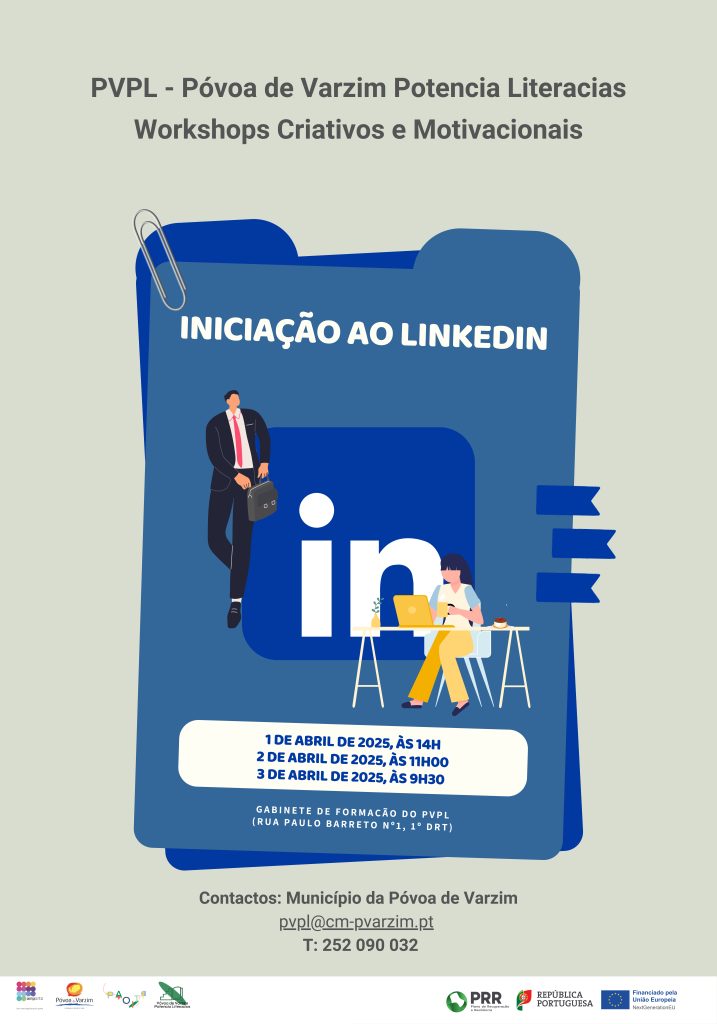 O Município da Póvoa de Varzim vai realizar um workshop intitulado “Iniciação ao LinkedIn”, nos dias 1, 2 e 3 de abril dirigido ao público-alvo do Projeto Póvoa de Varzim Potencia Literacias (PVPL) e outras pessoas interessadas.