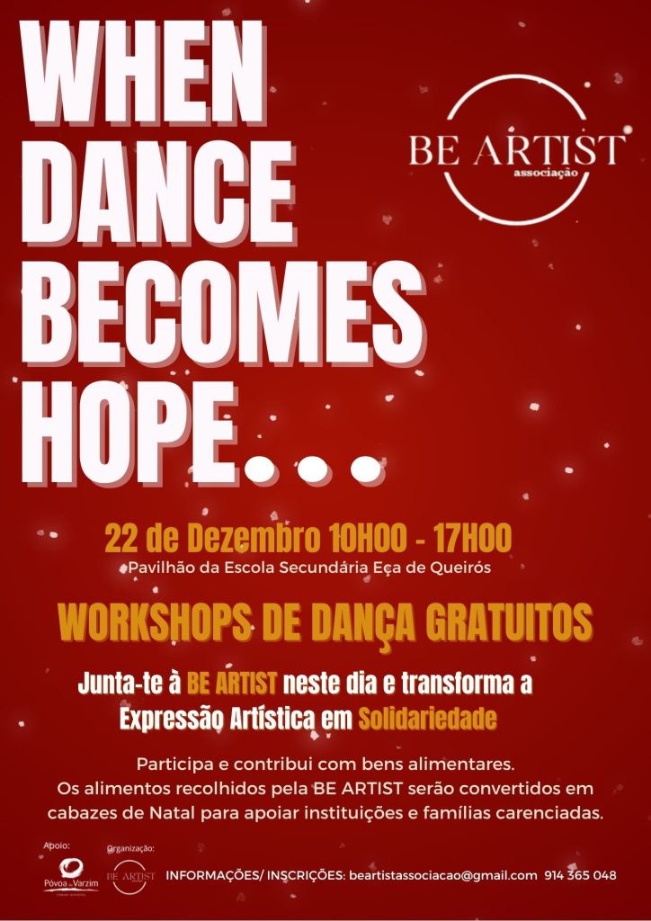 O projeto “When Dance becomes Hope” terá lugar no Pavilhão da Escola Secundária Eça de Queirós, com a realização de workshops de dança gratuitos, destinados a crianças a partir dos seis anos de idade.