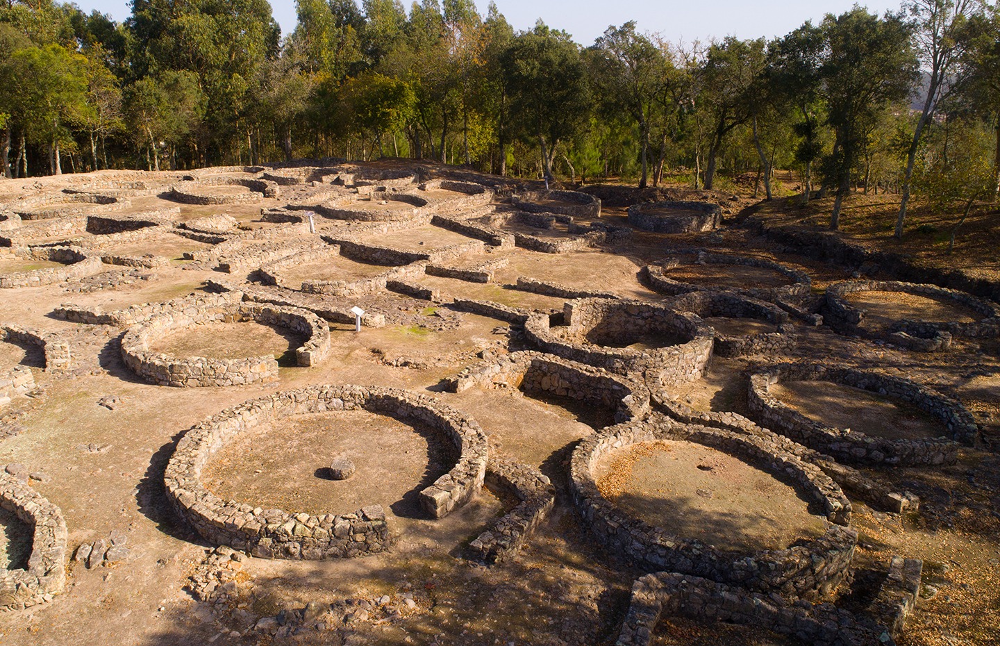 As outras duas linhas defensivas são reconhecíveis por desníveis e afloramentos de muros. Na plataforma central, o ordenamento urbano mostra um arruamento lajeado axial pelo centro do povoado, parecendo cruzar-se e formando, assim, quatro grandes unidades. Cada um destes quadrantes está dividido em núcleos familiares constituídos por várias construções em torno de um pátio quase sempre lajeado.
